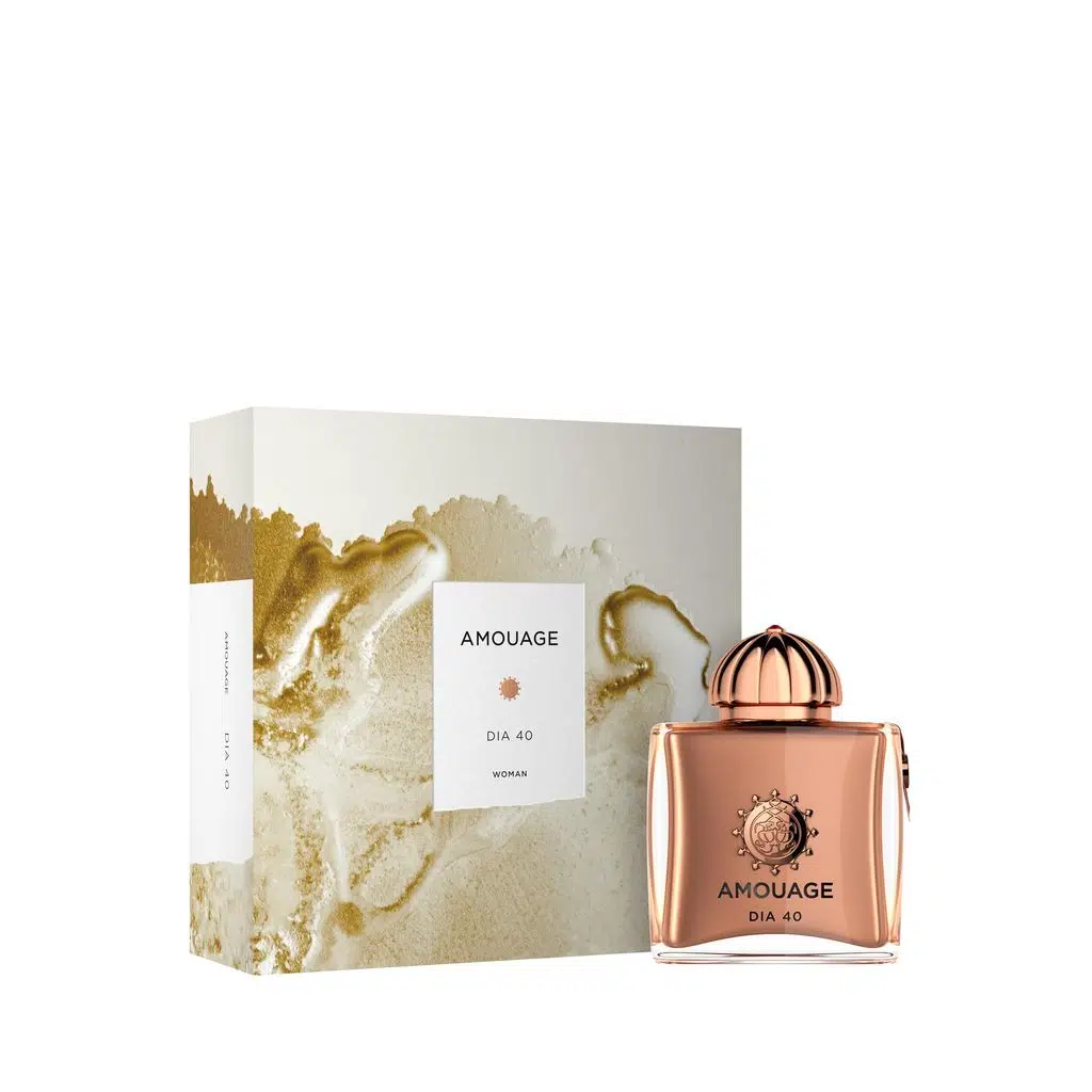 Dia Woman Eau de Parfum, kadınlığın çekici, zamansız gizemine dair farklı bir yorum getiriyor Dia 40 Woman Extrait, Amouage ikonunun yeni, narin ama inkar edilemeyecek derecede cömertliğin vücut bulmuş halidir Zarafet ve asaletin kokusu olan Dia 40, üç perdede geçen bir zaman hissini uyandırmak için birçok katmanını zarif bir şekilde dengeler: gün doğumu, güneşin zirve noktası ve gün batımı Üst Notalar: Siklamen Aldehitleri, Misk, Frenk Üzümü, Menekşe Yaprakları Orta Notaları: Gül, Portakal Çiçeği, Karanfil, Ylang-Ylang, Cistus, Defne Yaprağı, Tarhun Alt Notalar: Orris, Sandal Ağacı, Amyris, Guaiac Ağacı
