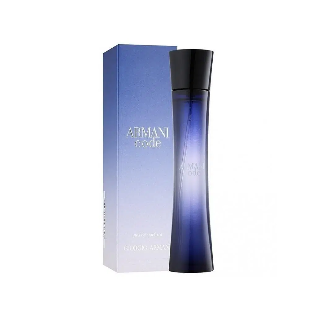 Armani Code, turuncu çiçek esansı, siklamen, yasemin ve vadideki zambak karışımı ile teninizi süslüyor. Parfüm şişesi duygusal kavisler ve parlak bir bitişle incecik bir siluet olarak tasarlanmış. İnce bir şifonn üzerindeymiş gibi basılan, mavi renkte nakışlarla sunulan şişenin yüzeyi zarafetiyle dikkat çekiyor.