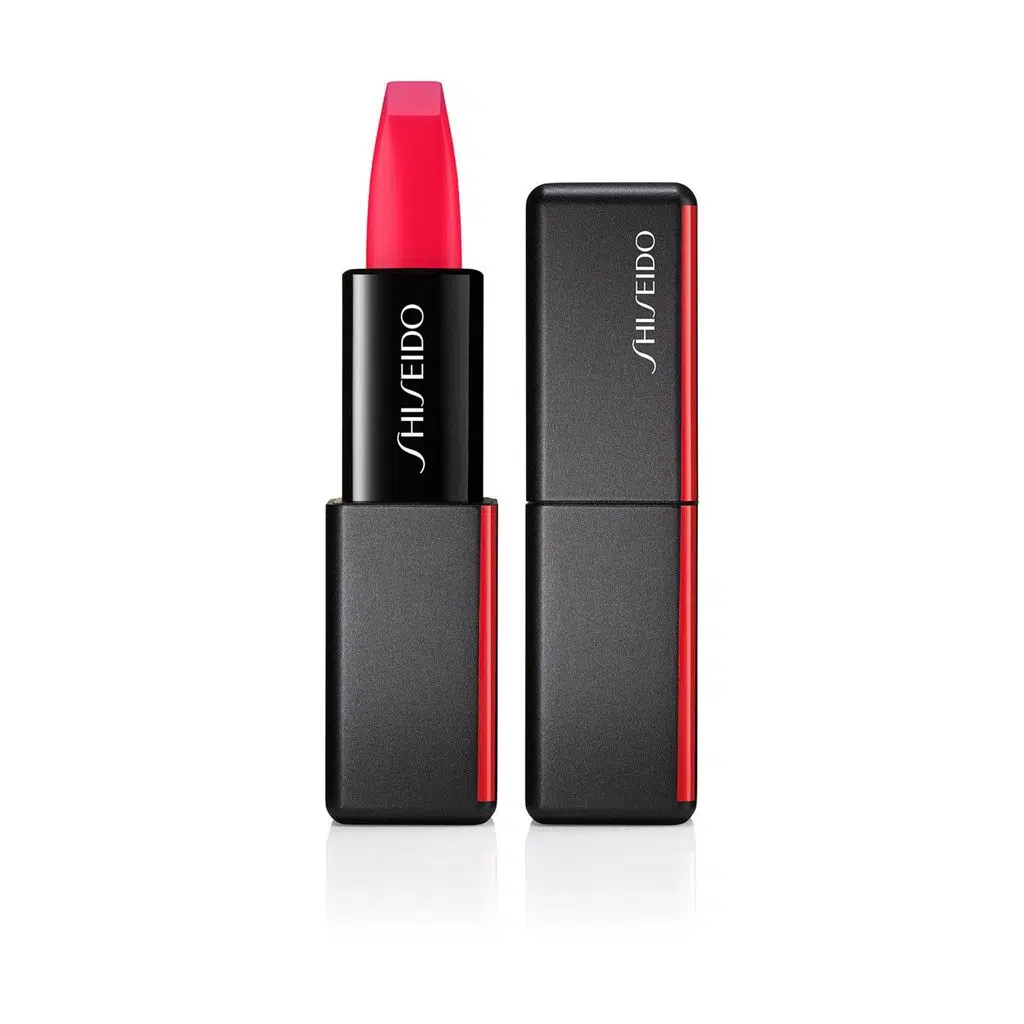 Shiseido Modernmatte Powder Lipstick, dudaklara uzun ömürlü, kadifemsi mat renk veren tam örtücü rujdur. Dudaklara ağırlık vermeden, pudramsı yumuşak bir görünüm oluşturur. 8 saat boyunca dudaktaki kadifemsi rengi korur. Formülündeki balmumu ve yağların eşsiz karışımı kusurları bulanıklaştırmak için dudakların üzerini ağırlıksız kaplar, böylece dudaklar pürüzsüz ve çizgisiz görünür. Mat olmasına rağmen dudakları kurutmaz, aksine nemlendirir.